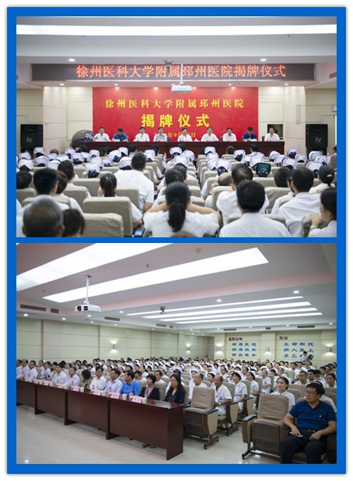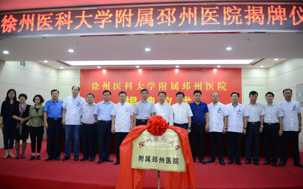 9月17日上午,徐州医科大学附属邳州医院揭牌仪式在邳州市人民医院举行。校领导夏有兵、郑葵阳、蔡红星,徐州市卫计委主任吴宪,邳州市委书记陈静、市委常委宣传部长冯仰琦,邳州市人民医院党委书记、院长王进,以及相关单位职能部门负责人、邳州市人民医院职工和实习生代表参加了揭牌仪式。