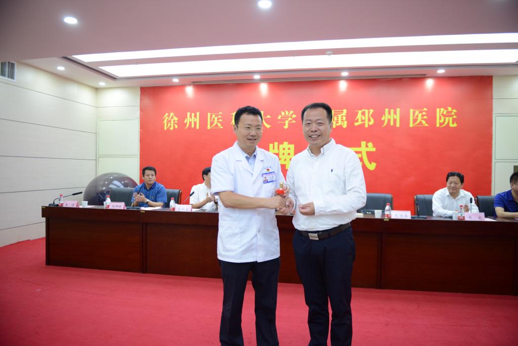 吴宪主任对徐州医科大学附属邳州医院揭牌表示祝贺,指出徐医大为邳州市人民医院输送了大批优秀医学人才,并在学科建设、人才培养等方面给予了大力支持与帮助,希望医院在徐医大的帮助下,尽快建成医术精湛、服务一流的三甲医院,满足邳州及周边地区人民对健康的需求。