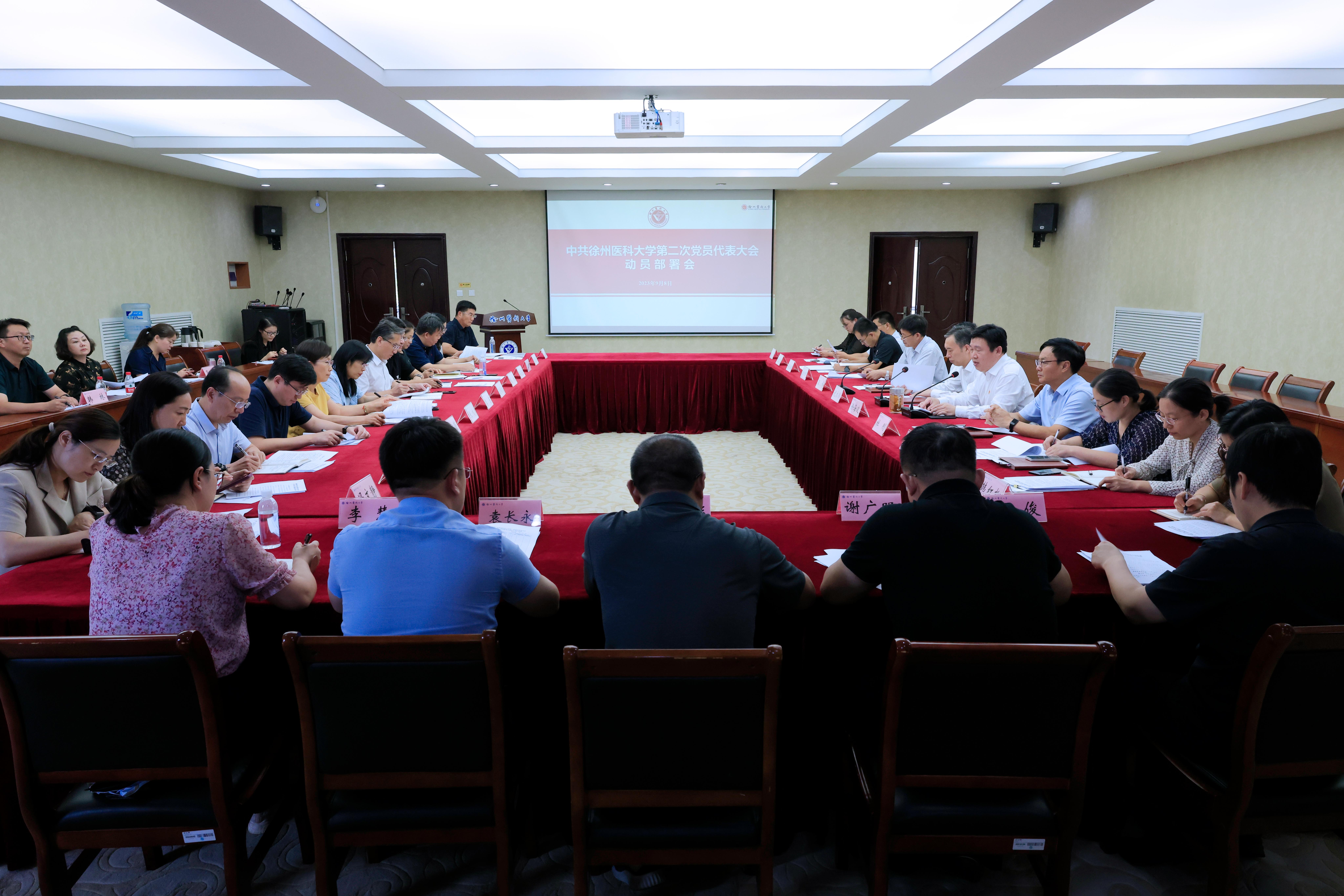 9月8日下午,我校第二次党员代表大会动员部署会在行政楼201会议室举行。校党委书记祝木伟,党委副书记、副校长徐海波,党委常委、纪委书记王峰,党委常委、组织部部长杜刚,二级党组织书记和直属附属医院组织部门负责人参加会议。会议由徐海波主持。