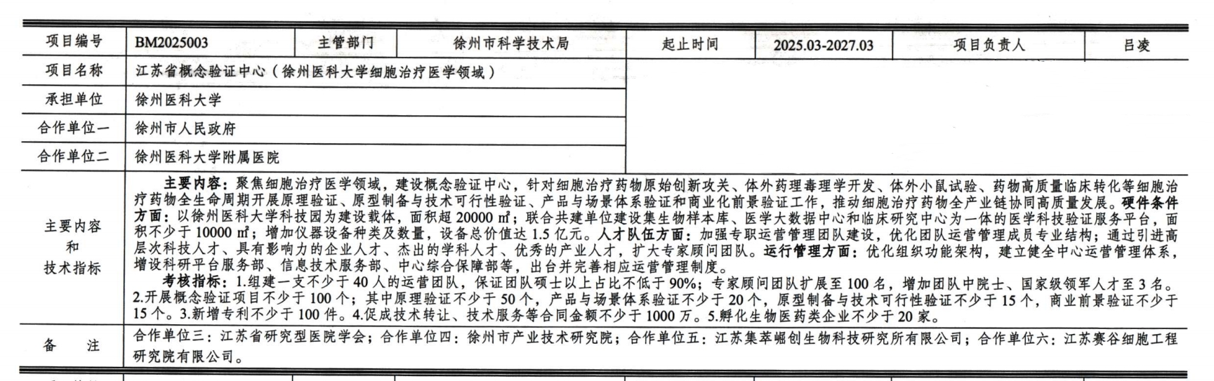 近日,江苏省财政厅、江苏省科学技术厅联合印发《关于下达2025年省基础研究专项资金(重大创新平台计划第三批)的通知》,由我校资产经营公司牵头组织的徐州医科大学细胞治疗医学概念验证中心成功获批省级概念验证中心,这是我校在科技成果转化平台建设领域取得的重要突破,也是资产经营公司主动服务学校科技创新与地方产业发展的重要成果。