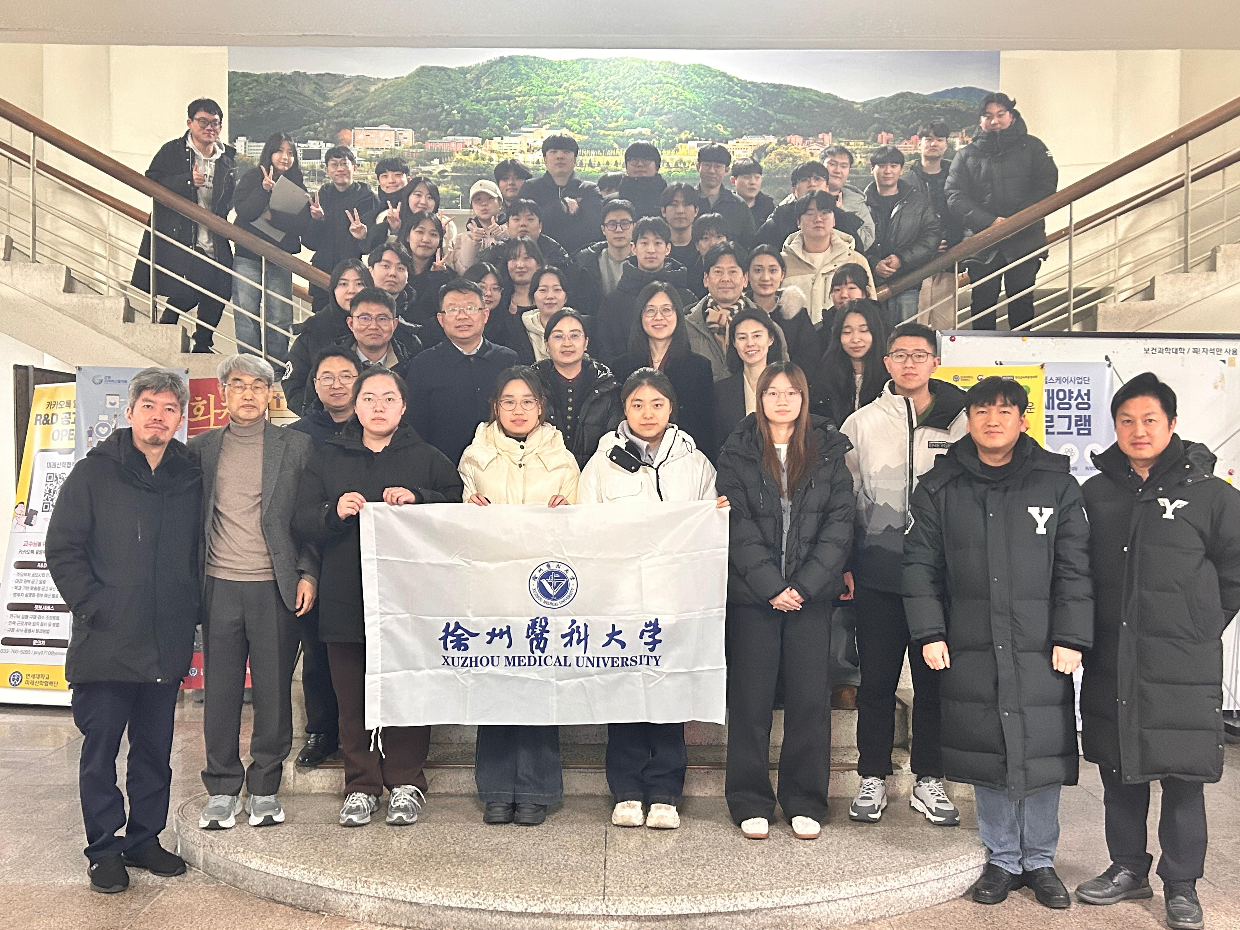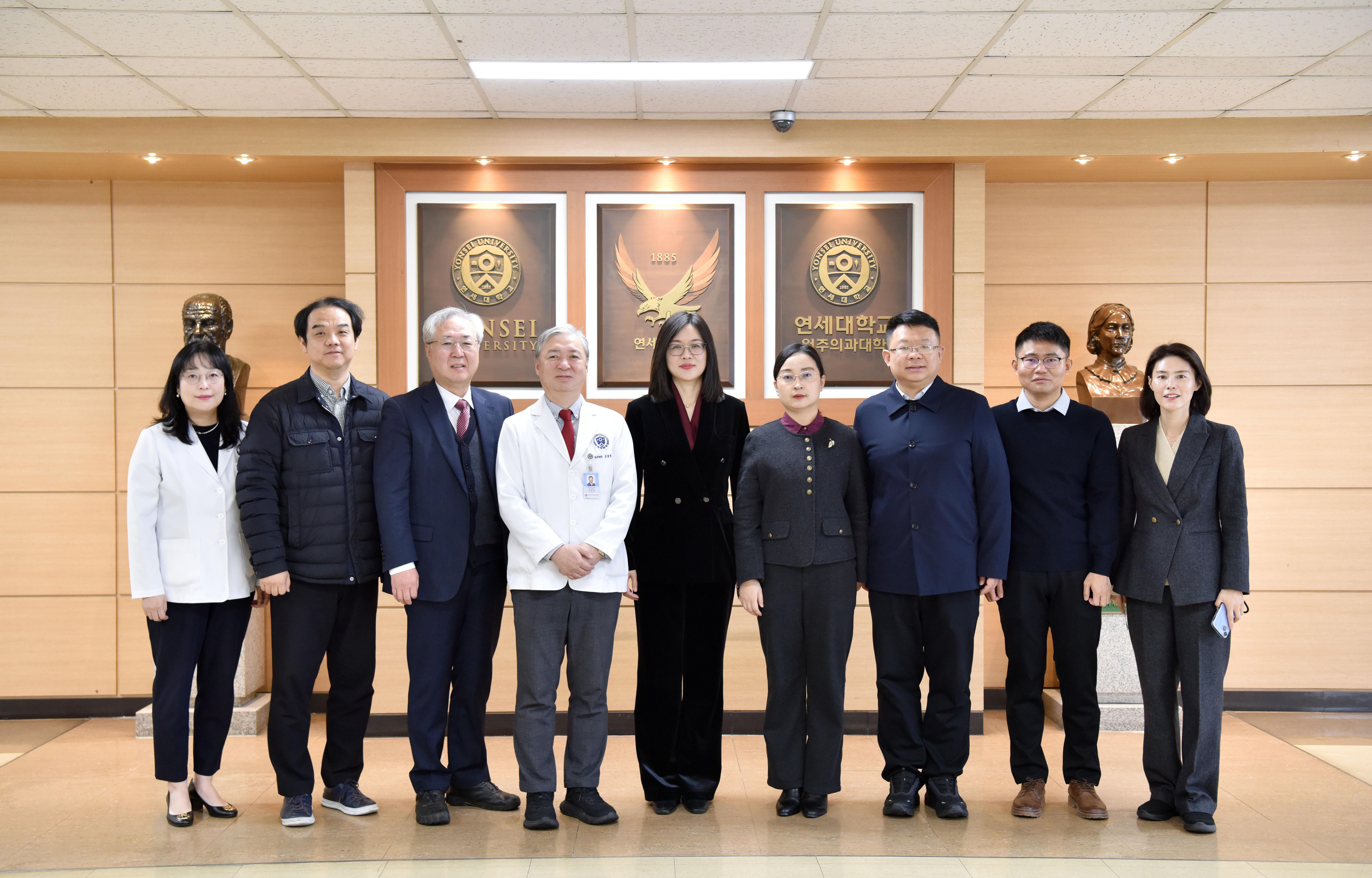 1月19日上午,代表团一行访问了延世大学原州校区医学院。座谈期间,双方围绕学生实习交流、教师互访、专题讲座以及两校在CAR-T细胞治疗领域的共同研究等合作内容进行了深入交流与探讨。会后,代表团参观了该医学院的教学实习医院——延世大学校原州世福兰斯医院。