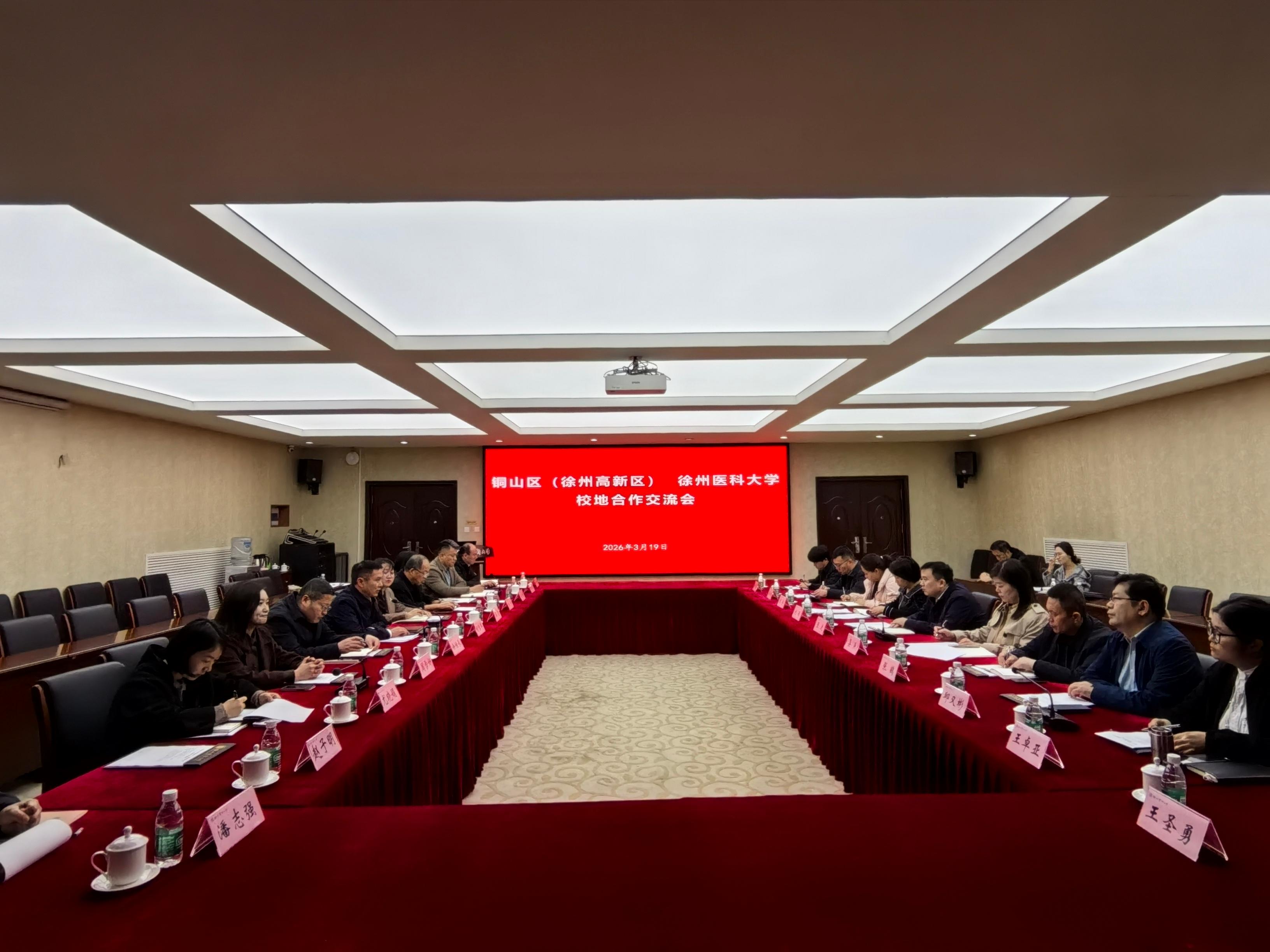 3月19日,铜山区(徐州高新区)与徐州医科大学校地合作座谈会在我校召开。校党委常委、副校长刘慎军,铜山区副区长张迪出席会议并讲话。双方相关部门负责人参加会议。
