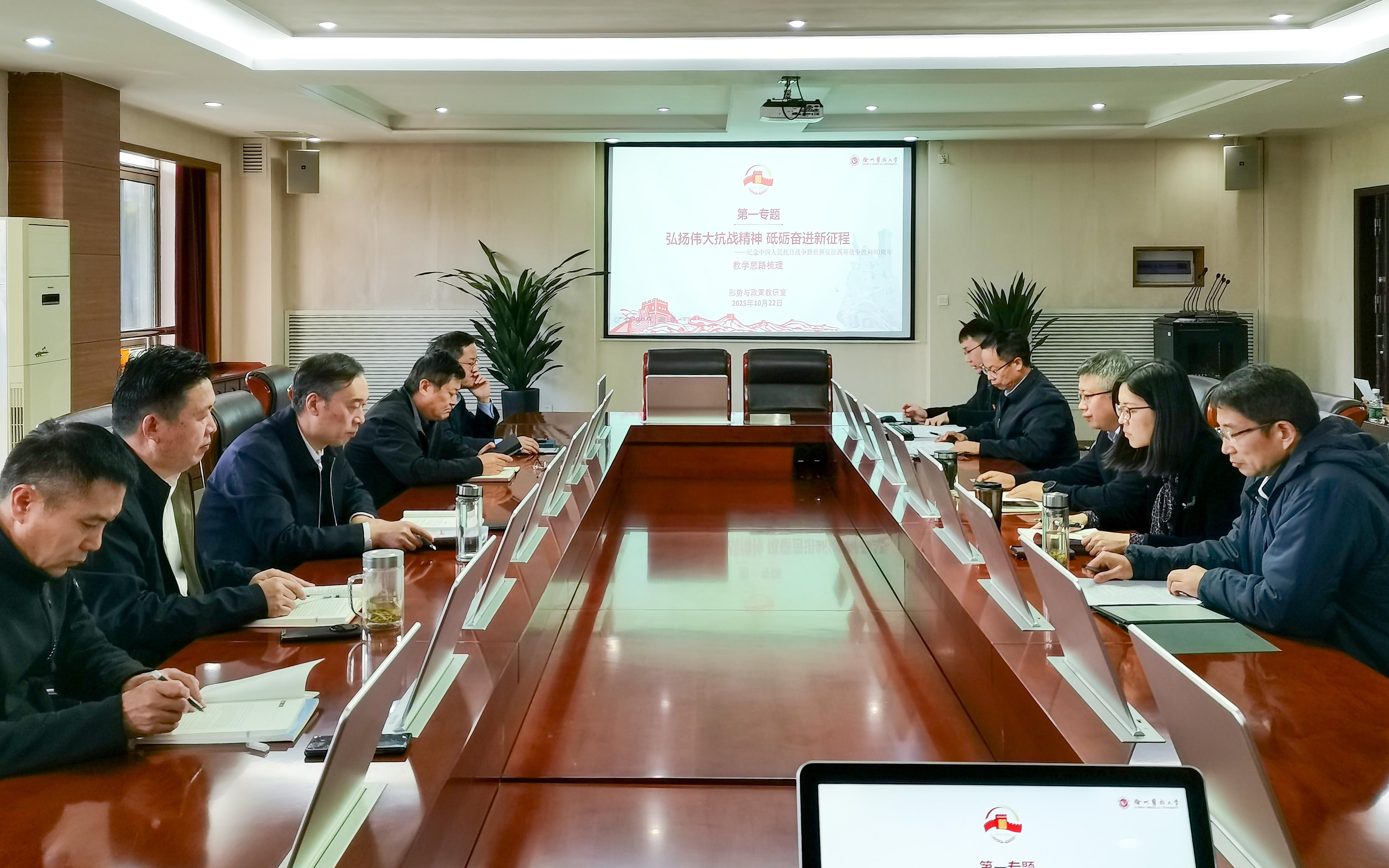 校党委书记祝木伟强调,要高度重视《形势与政策》课程的立德树人作用,在课堂教学中坚持灌输性和启发性相统一,帮助学生树立正确的抗战史观和英雄史观,认真学习习近平总书记关于传承和弘扬伟大抗战精神的重要讲话,把握好教学内容的深度与广度,让学生深刻认识伟大抗战精神中爱国情怀、民族气节、英雄气概和必胜信念的实质内涵,激励青年学生自觉传承和弘扬伟大抗战精神,为以中国式现代化全面推进强国建设、民族复兴伟业而团结奋斗。