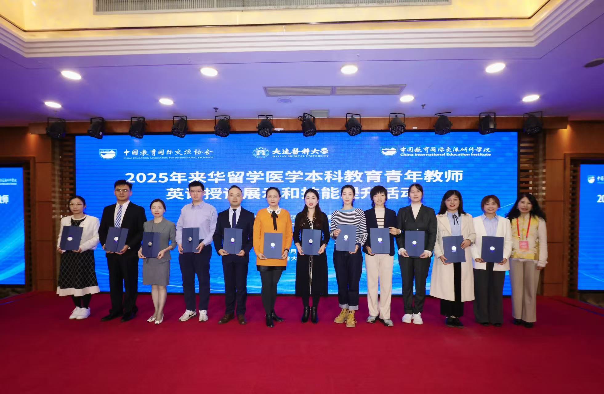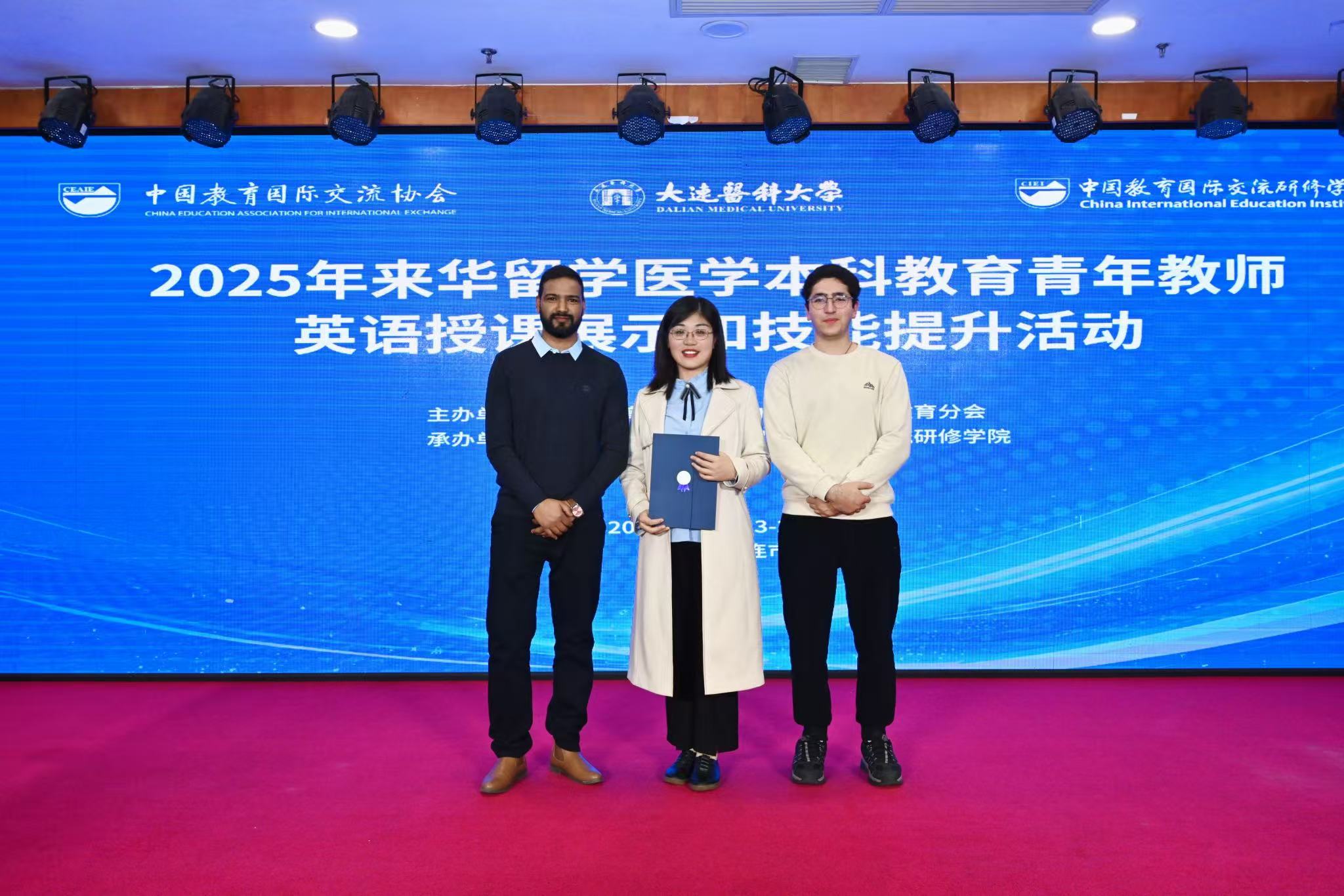 10月23至26日,由中国教育国际交流协会主办、大连医科大学与中国教育国际交流研修学院联合承办的“2025年来华留学医学本科教育青年教师英语授课展示和技能提升活动”在大连举行,来自全国47所高校从事来华留学英语授课医学教育的教师和管理人员共200多名代表到场观摩。国际教育学院院长张卓琦率队参会,我校生命科学学院于亚男老师代表学校参加活动,连云港市立东方医院吕艳老师及两名留学研究生教学助理AZIZI SYED MATIULLAH、SUNIL SINGH PUJARA一同参加。