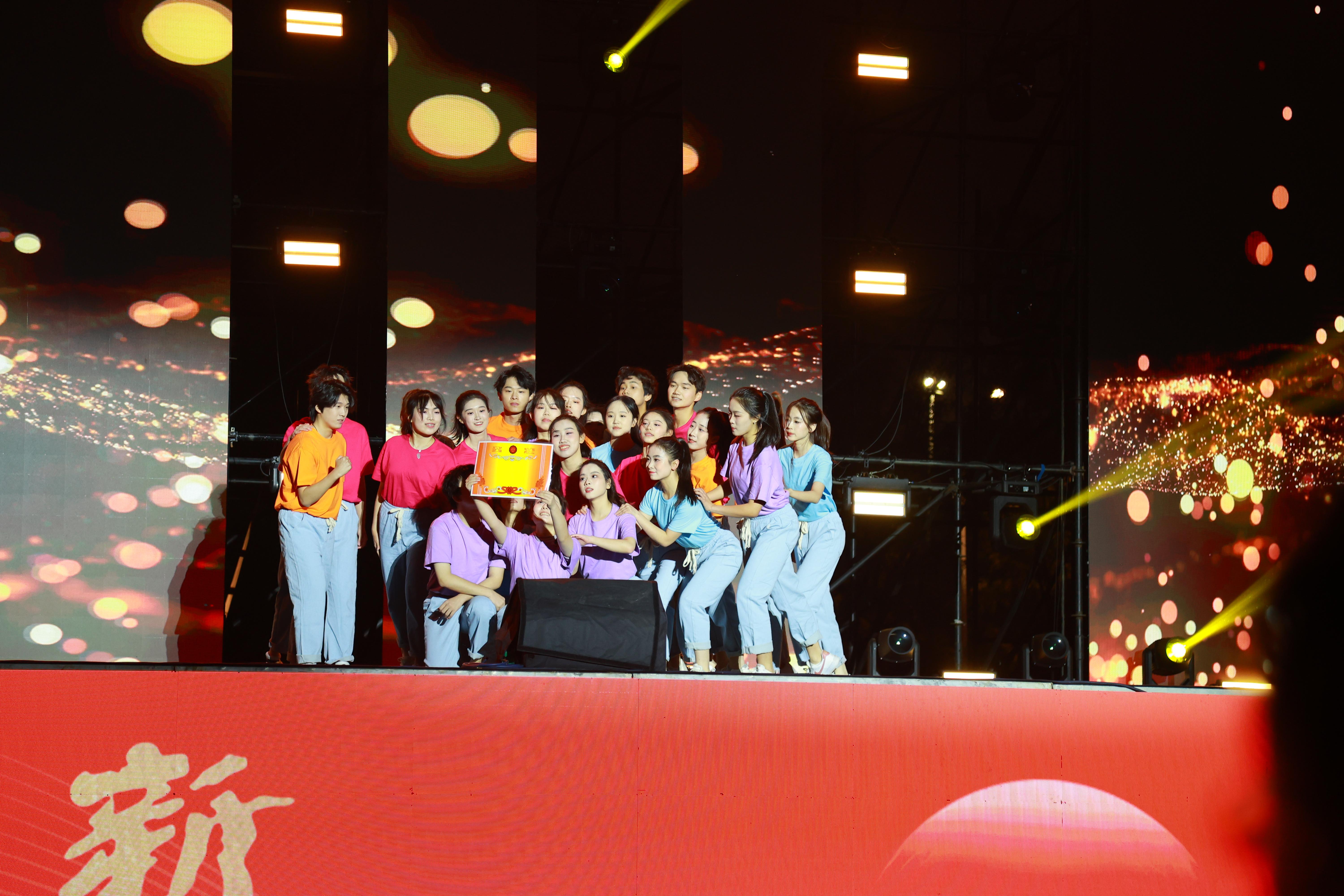 晚会在酷炫的灯光秀与开场视频中拉开帷幕,大学生艺术团的舞蹈《追光》点燃全场热情;情景剧《真理之歌》再现了烽火岁月中,革命先驱将闪耀的信仰化作前行的火炬,引领全国人民为民族存亡挺身而出、向光而行;在节目《青春征程》中,三位优秀的徐医青年讲述了他们将“以德载医、博学创新”的校训精神融入实践的奋斗故事;歌曲《世界赠与我的》以温暖清澈的歌声,传递出徐医大家庭的深切温情与包容;新生秀《散装江苏,整装徐医》生动展示了徐医青年团结一心、共筑梦想的青春风采。留学生带来的舞蹈《非同凡响Dynamite》以充满异域风情的酷炫舞步点燃全场,展现了文化交融的无限魅力。徐州幼儿师范高等专科学校的学生们还带来了苏超赛场上的热舞《奔向前方》,现场观众掌声与欢呼声不绝于耳。相声《徐医之最》幽默盘点校园生活的独特趣味;歌曲串烧《跃动的节拍》用一串串熟悉的旋律,串起共同的青春记忆;朗诵《仁心启航》将“健康所系、性命相托”的庄严誓言融入字里行间;辅导员的节目《我爱你中国》唱响了他们心中的家国情怀;舞蹈《接力》艺术化地呈现了徐医精神薪火相传的动人历程。最后,整场晚会在歌曲《有我》中落下帷幕,歌声嘹亮而坚定,展现了徐医青年在学校朝着建设特色鲜明、国内一流的高水平医科大学目标奋勇前进的征程中,豪情满怀、壮志在心的责任与担当。
