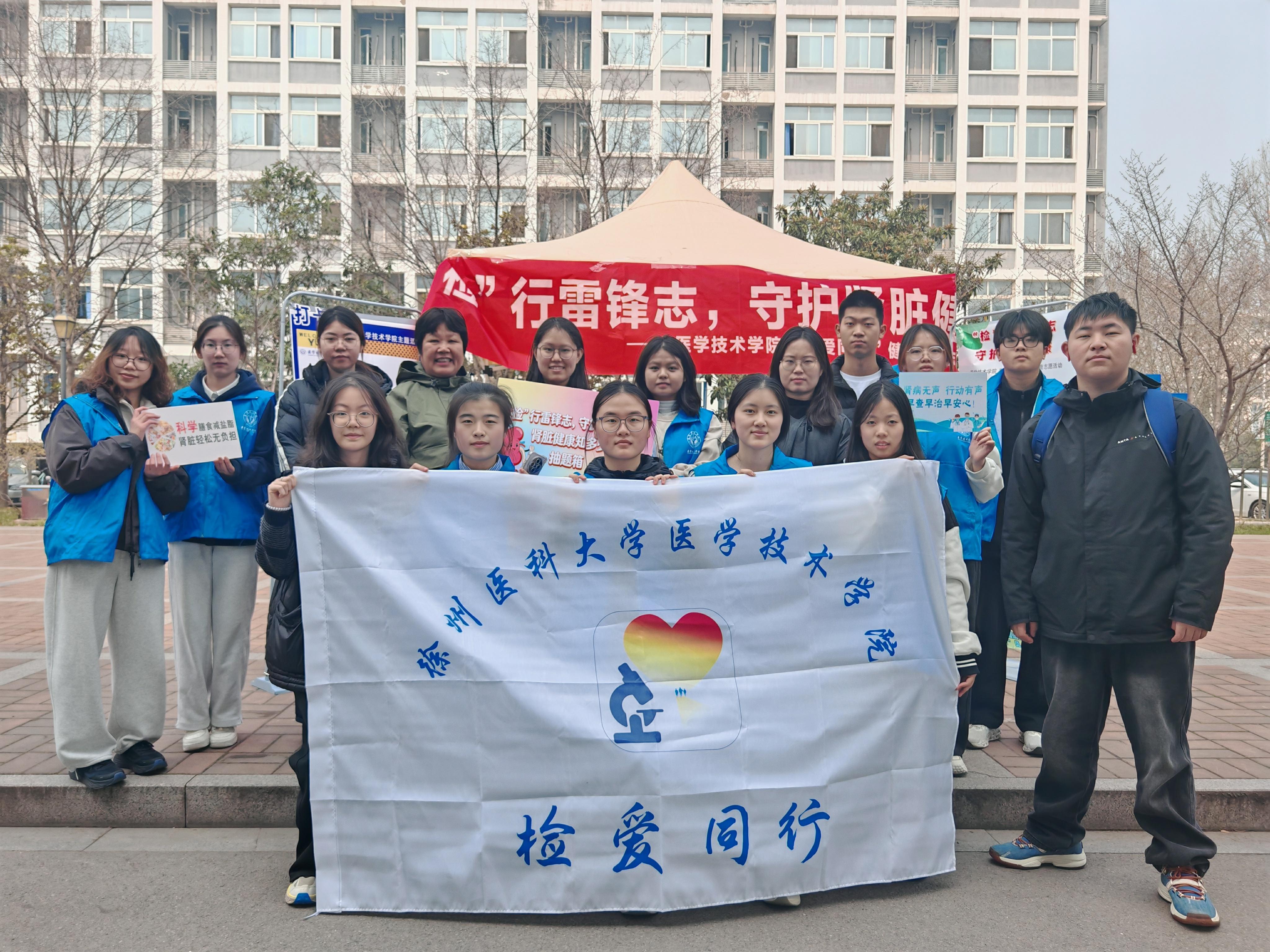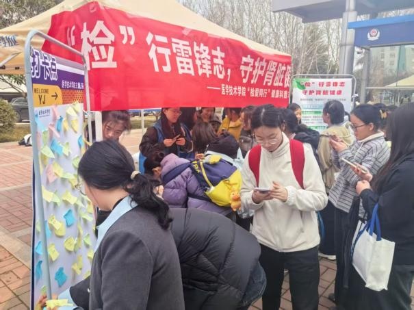 在世界肾脏日来临之际,3月12日,我校医学技术学院精心策划的“‘检’行雷锋志,守护肾脏健康”—“检爱同行”健康科普志愿活动在学校青年广场开展。学院师生以专业为底色、以创意为桥梁,将肾脏健康知识化作接地气、有新意的科普体验,让守护“沉默器官”的理念浸润校园,让“检爱”的暖流在师生心间流淌。