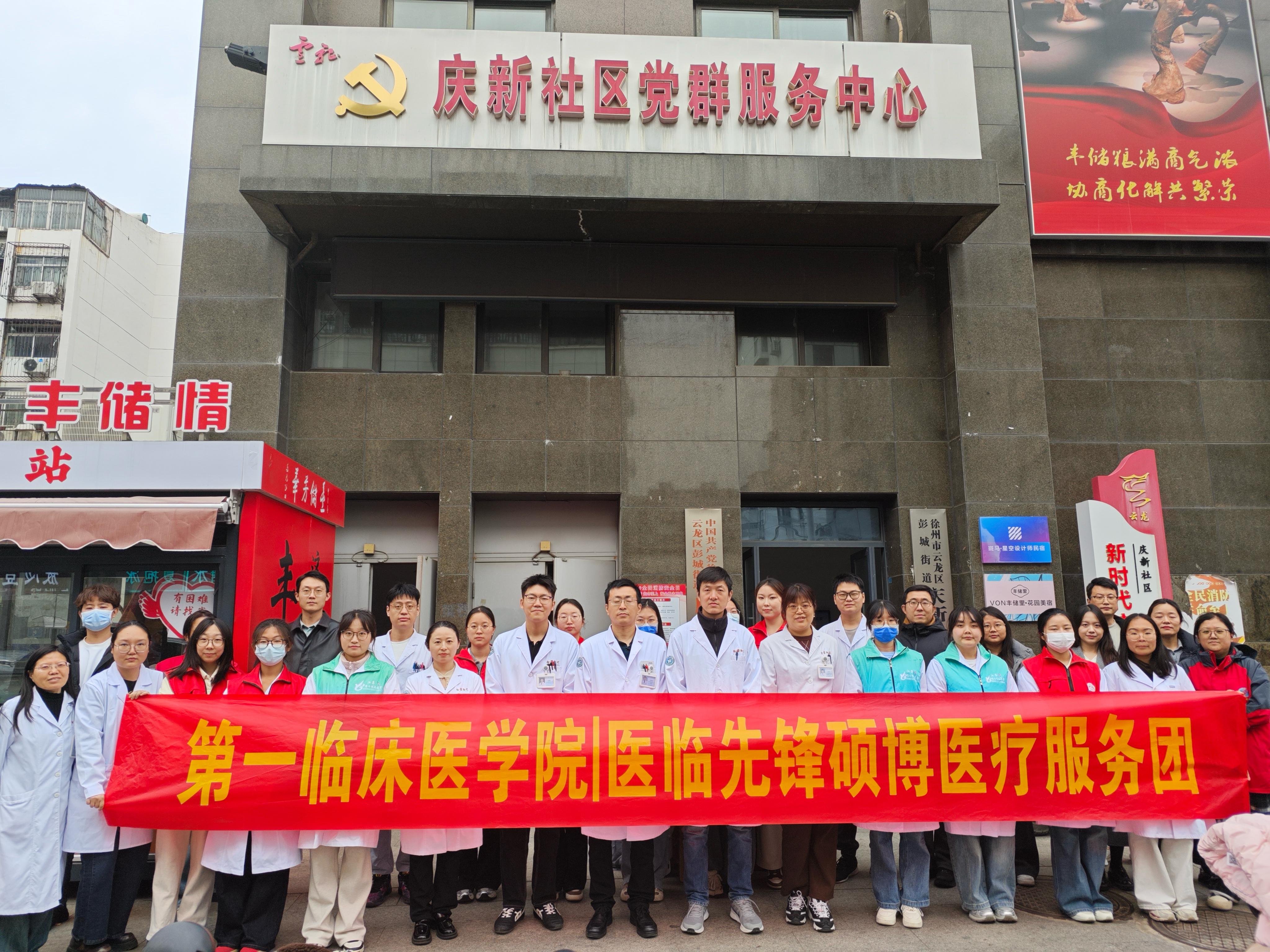 杏林春暖,志愿先行。3月19日,第一临床医学院“医临先锋”硕博医疗服务团赴徐州市云龙区彭城街道庆新社区,开展健康惠民志愿服务活动。本次活动联动徐医附院资深临床专家与学院硕博研究生骨干力量,把专业医疗服务从医院诊室 “搬” 到居民家门口,通过精准科普、贴心义诊与健康指导,为社区群众筑牢健康防线,送上春日里的暖心守护。