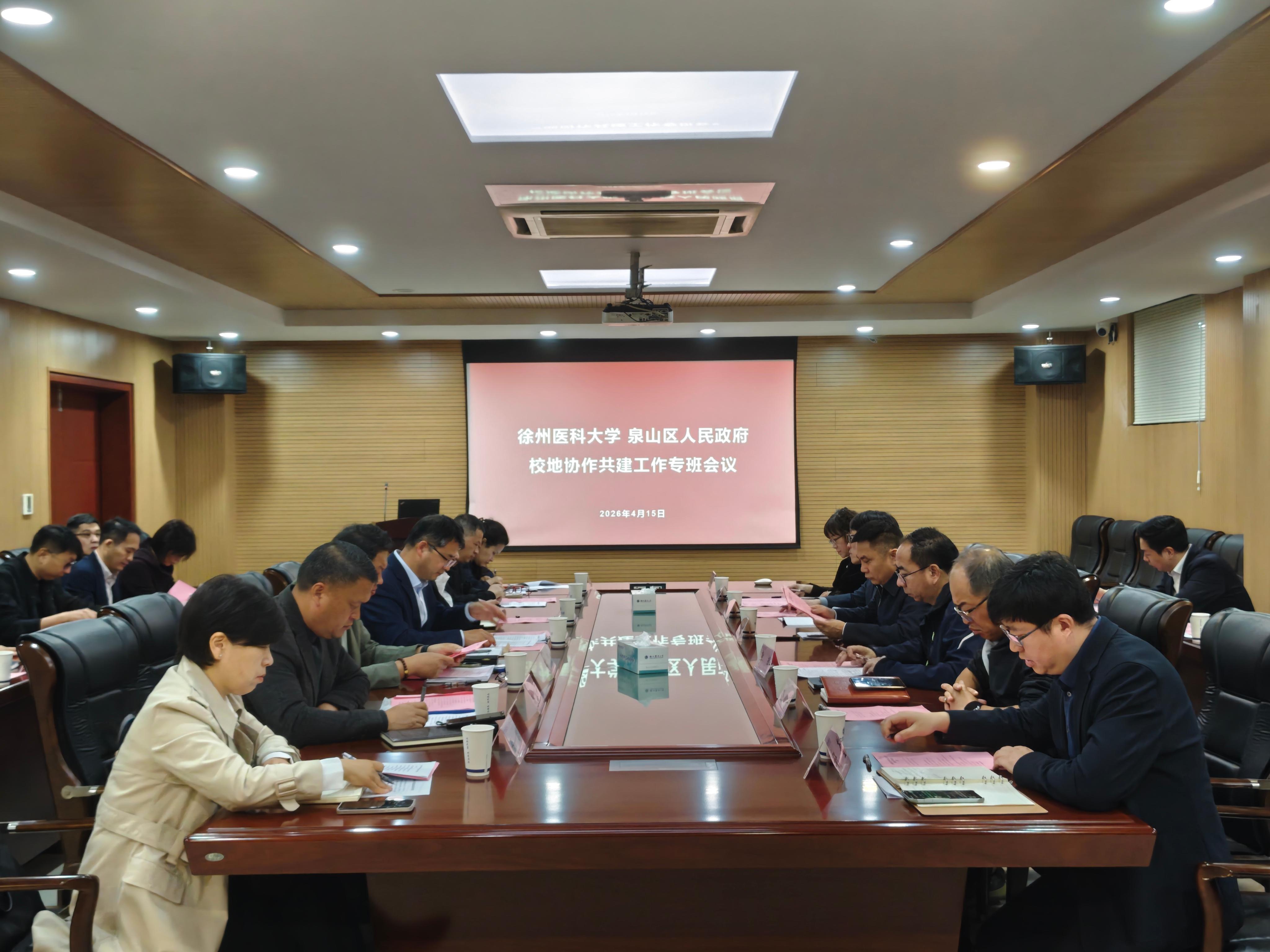 为深入推进校地融合发展,加快国家大学科技园创建步伐,全力推动重点项目落地见效,4月15日上午,徐州医科大学与泉山区人民政府校地协作共建工作专班会议在西校区召开。校党委常委、副校长刘慎军,泉山区委常委、区政府党组成员许刚出席会议,校地协作共建工作专班相关部门及项目负责人参加会议。会议由校资产经营公司总经理轩萱主持。