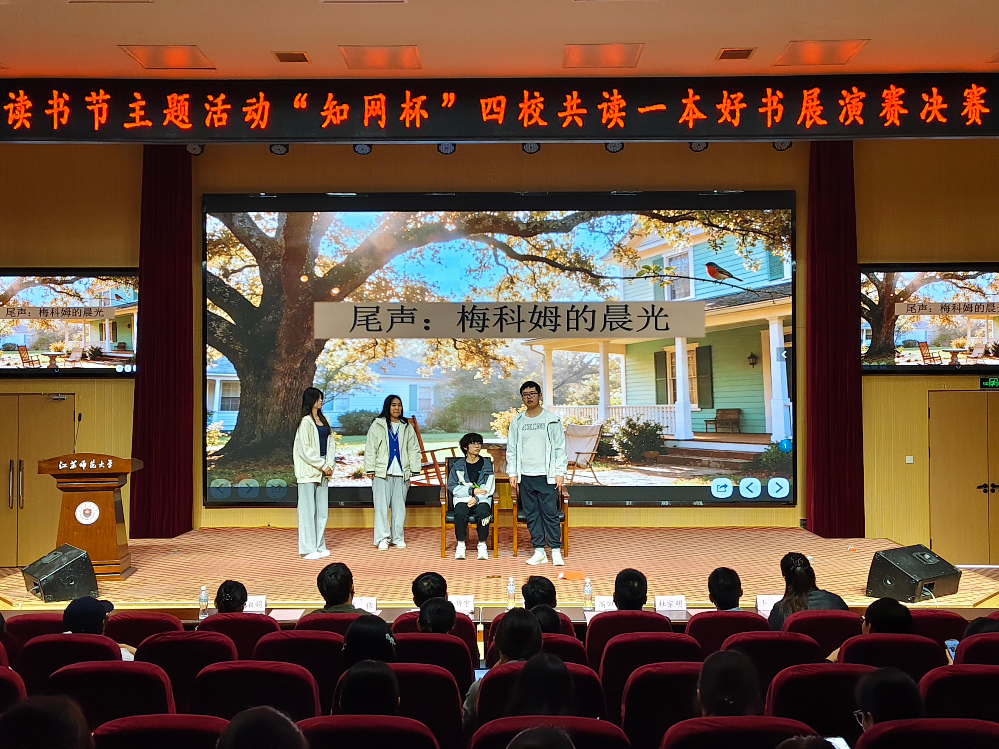 作为校际阅读文化交流的重要品牌赛事,“共读一本书”活动始终以书香为纽带,持续搭建在徐高校读者思想交流、文化互鉴的平台,让经典阅读成为青年学子滋养精神、淬炼品格的重要载体。本届活动以经典名著《杀死一只知更鸟》为共读书目,引领学子们探寻良知与正义的内核,感悟人性温暖与责任担当。我校参赛读者以多元形式解码经典、诠释初心。多人朗诵情感丰沛、重构剧本立意深远,以真挚表达传递书中深刻感悟;话剧表演忠于原作、深度演绎,生动复刻故事里的坚守与抉择;舞台剧巧妙融合医学生专业特色,将职业道德与职业展望融入演绎,让经典内涵与医者使命相互交融。学子们以青春视角解读经典,在声台形表的展现中激荡思想,尽显徐医学子的人文素养与精神风采。