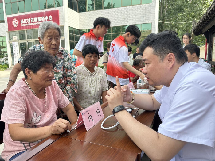 “豫”见兰考社会实践团成员前往杨庄村,在村内党群服务中心外架起桌子,为村内居民开展了一场个性化“医疗服务”。本场“医疗服务”共分为四站:测血压、测血糖、内科门诊、口腔门诊,均由实践团师生提供专业服务。