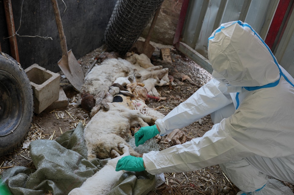 3月9日,团队前往徐州市经开区大黄山街道2家牛羊养殖场,为牛羊提供布鲁氏菌病筛查服务,通过试剂盒检测、动物体征观察及环境消毒指导,帮助养殖户识别潜在疫病风险。公共卫生学院流行病学教研室主任殷德辉副教授结合案例现场授课,向养殖户及团队成员讲解布病传播途径、人员防护要点及应急处置措施,用技术培训为牛羊养殖户培养了一支“带不走的防疫队”。